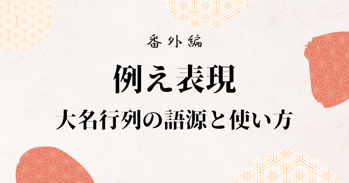 本記事では、例え表現「大名行列」の語源や由来について解説し、言葉の使い方とたとえ例文を紹介します。